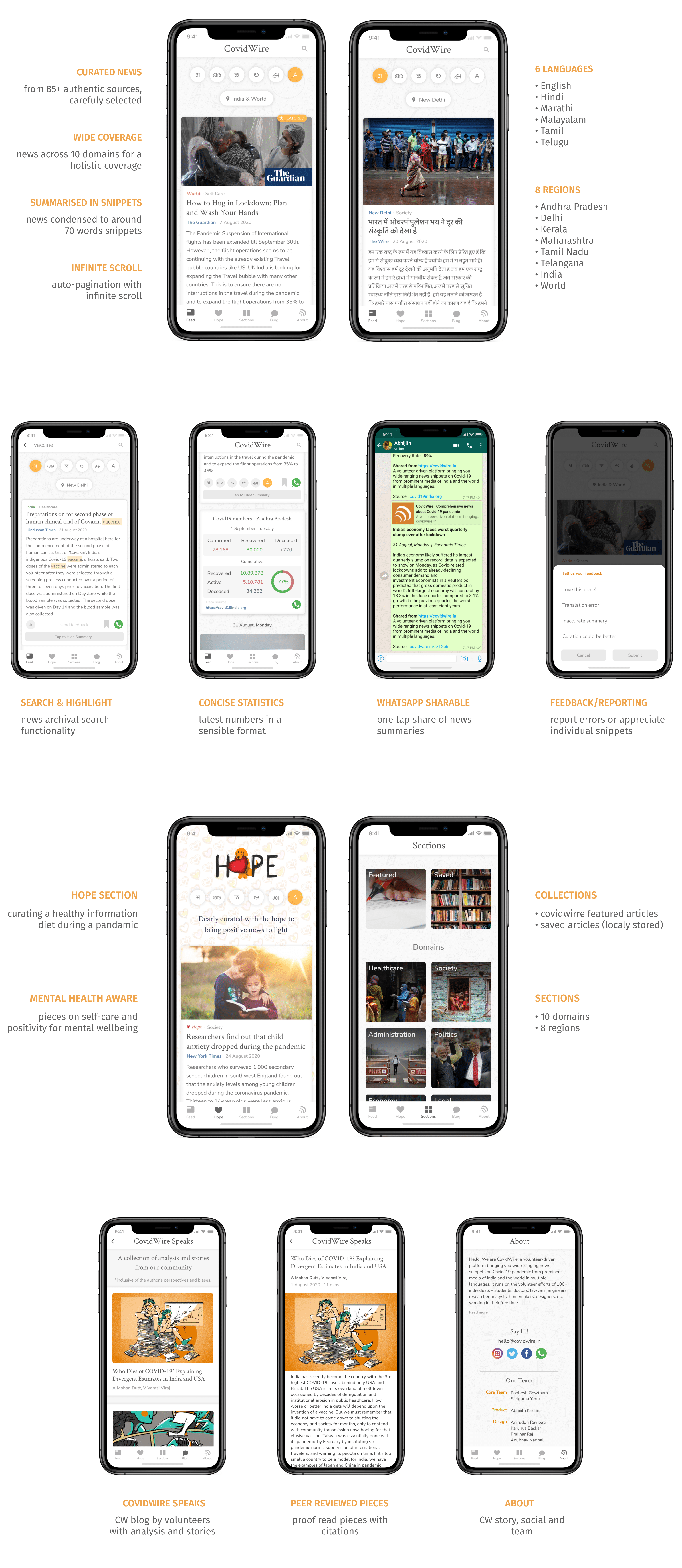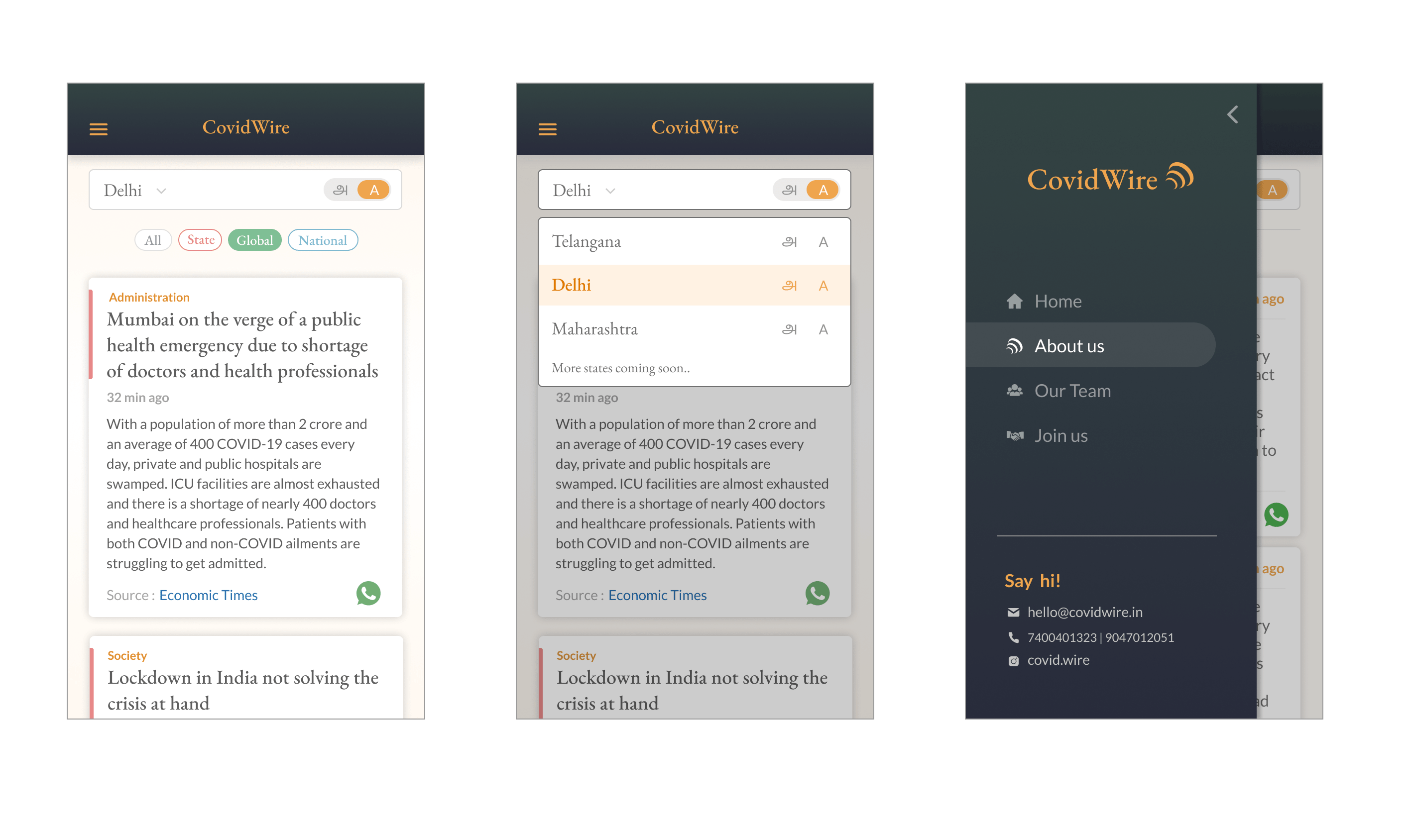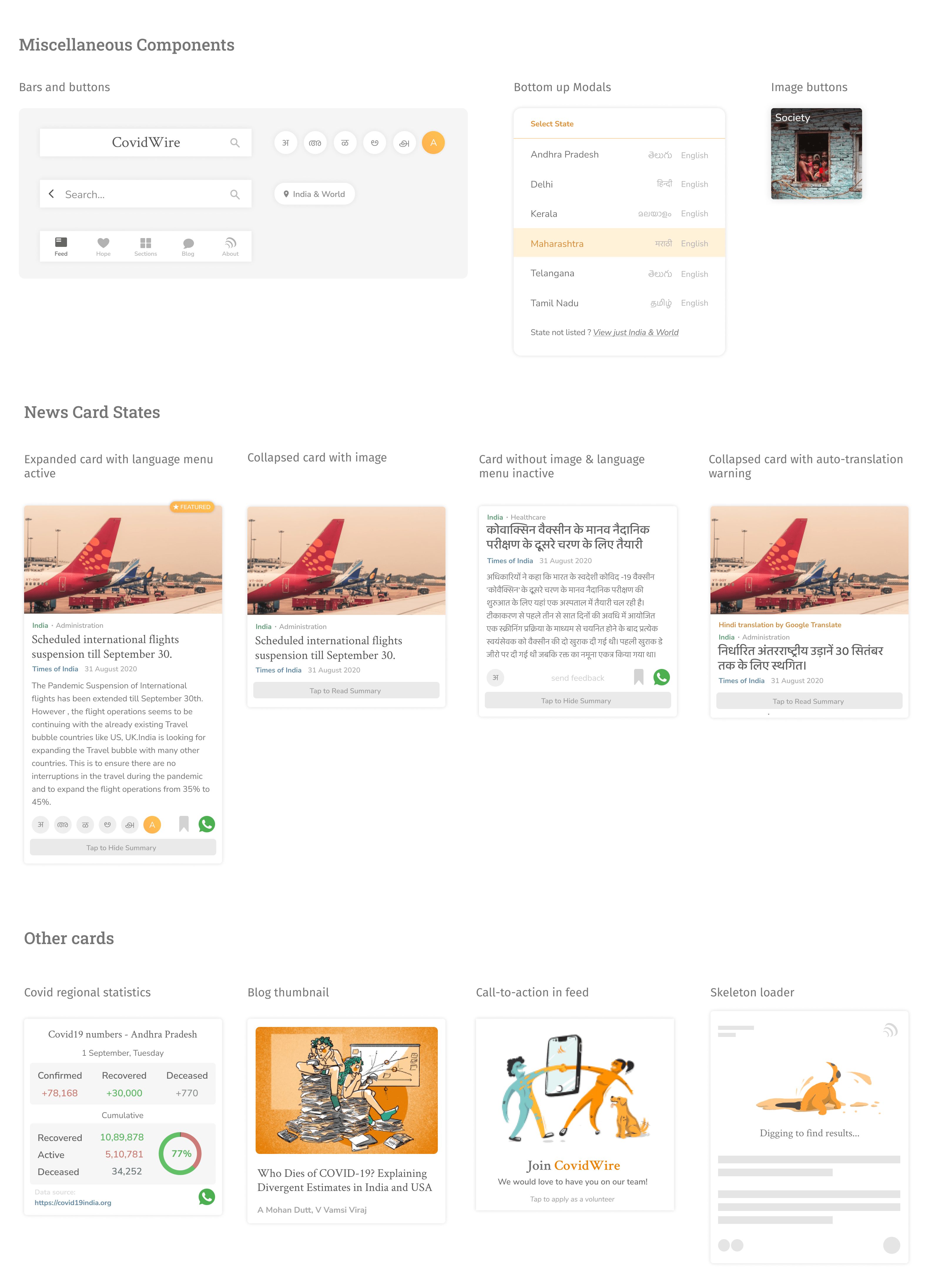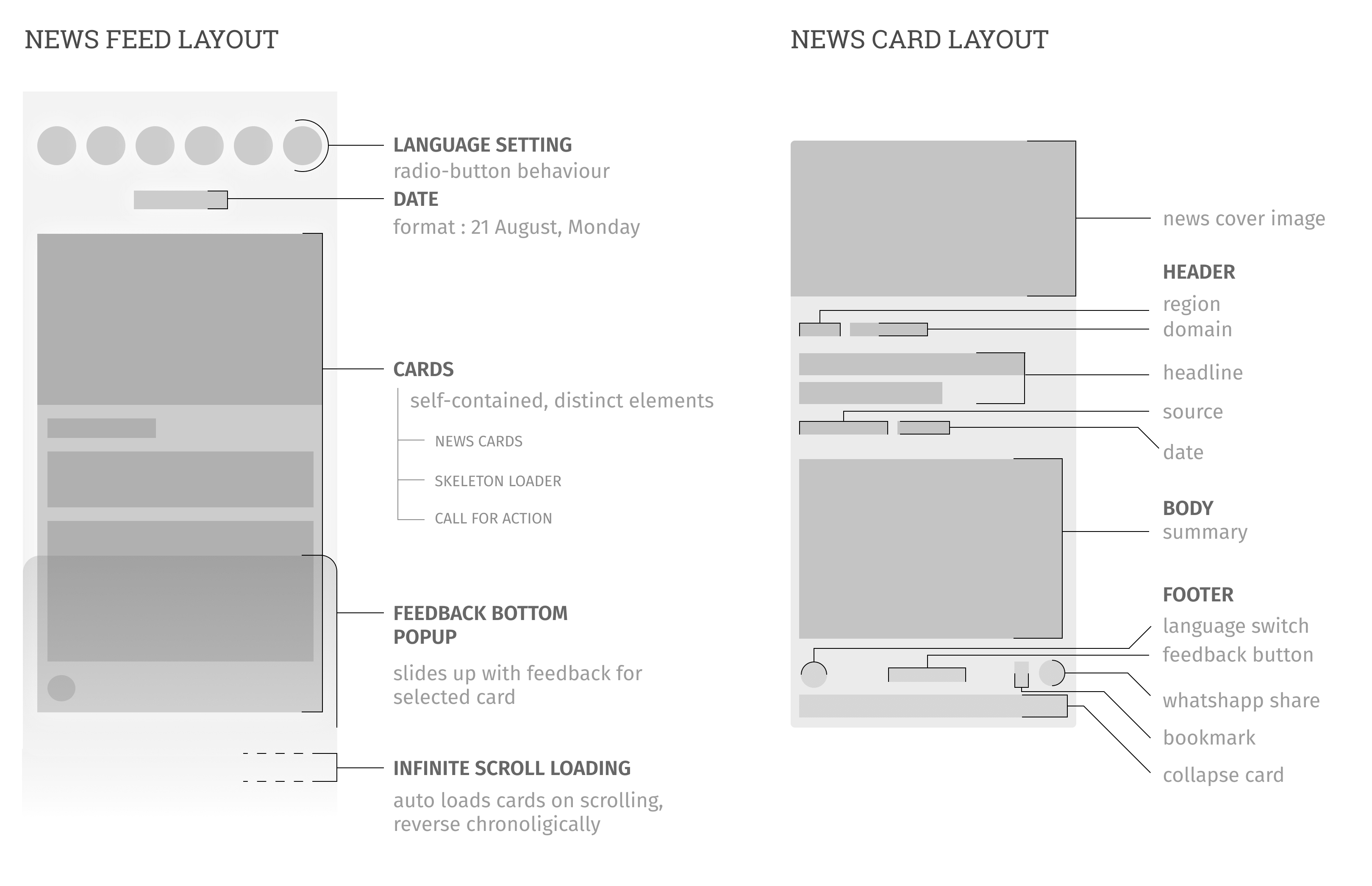 Our process to design the application was iterative in nature. During every release, we would redesign certain aspects to accomodate new requirements and remove shortcomings of the existing design. At all points, we tried to keep the UX simple and familiar as most of our target demographic were emergent users. To better understand how to design the final flow of news consumption in our application, we first built a beta version to test out the core features.
